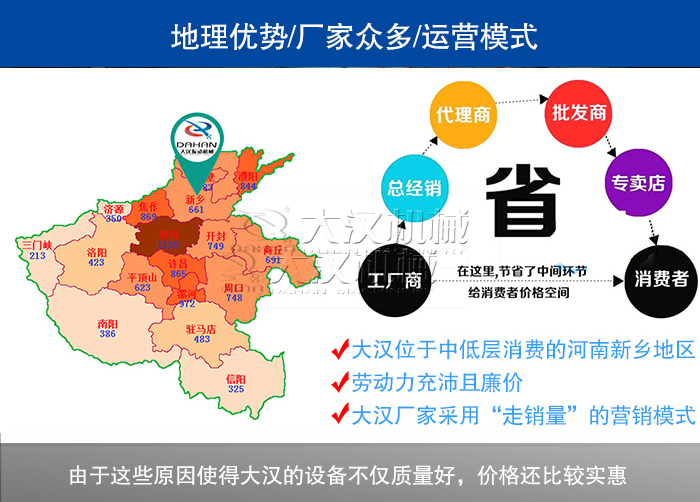 大漢公司位于河南省新鄉市,該地區物價比對北京、上海、廣東地區低,這就造成廠家在生產設備時材料、人工費用低,設備生產成本低,再加上其交通便利,在產品運輸上也可以節省一大筆費用,所以超聲波篩分機價格一般不會太高。