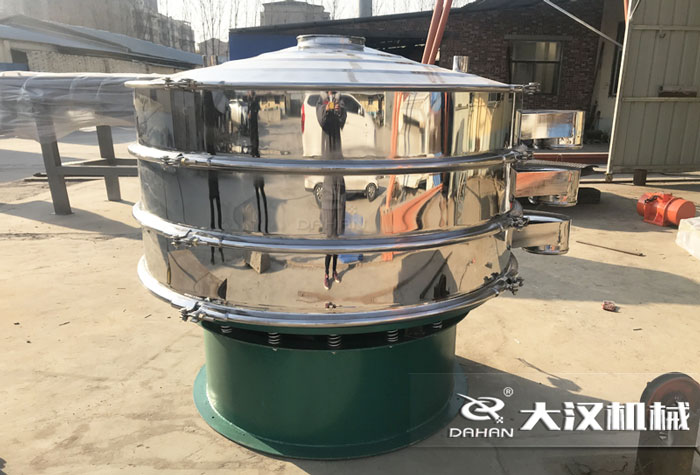 DH-1500-2S型振動篩分機為1500mm直徑單層兩出口不銹鋼三次元振動篩,子母網分離式網架,與物料接觸半部為304不銹鋼材質,底座為碳鋼材質。
